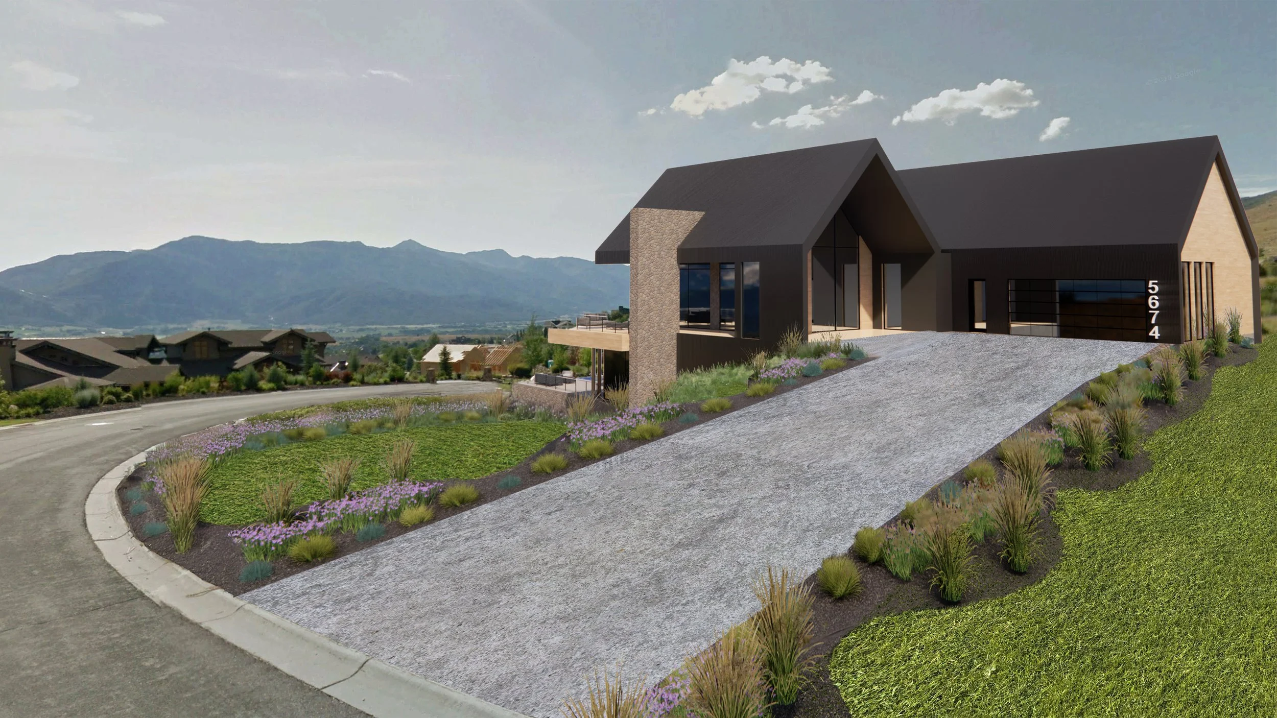 This 5,000-square-foot modern home in Eden, Utah features clean gabled roof forms, expansive floor-to-ceiling windows, and double-height living areas that capture sweeping mountain views. Designed for a luxury mountain lifestyle, the residence includes an infinity-edge pool, open-concept interiors, and seamless indoor–outdoor connections through terraces and covered patios. Blending contemporary detailing with natural materials, the home offers a refined yet inviting retreat tailored to its dramatic Wasatch Range setting.